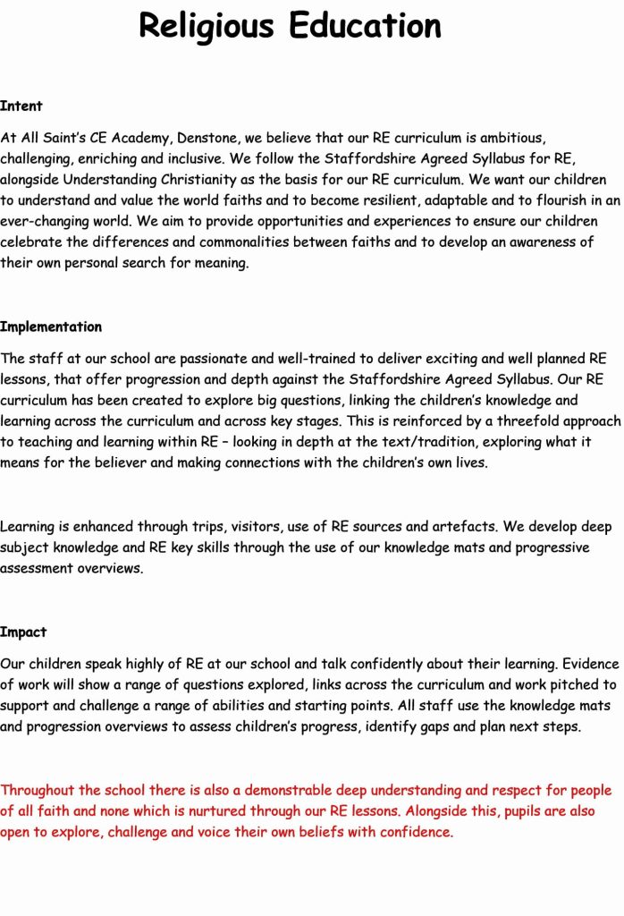 As Church of England schools, we are passionate about the teaching of Religious Education and value its place highly in our curriculum provision. We have worked together with our advisor from the Lichfield Diocese, to create our long-term plans. They include units from Understanding Christianity and the Staffordshire Locally Agreed Syllabus. Our teaching is heavily focussed on Christianity but we are committed to teaching our children about other world religions to enable them to flourish in our diverse multicultural society.